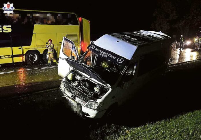 – Na miejscu policjanci ustalili, że 33-letni obywatel Ukrainy, kierując autokarem relacji Warszawa – Odessa i jadąc w kierunku Chełma, na prostym odcinku drogi nie dostosował prędkości do warunków panujących na drodze i najechał na tył busa marki Mercedes. W wyniku tego zderzenia Mercedes Sprinter, którym kierował 47-letni obywatel Ukrainy, wjechał w tył lawety, którą kierował 32-letni mężczyzna – również obywatel Ukrainy. Oba samochody zjechały na przeciwległy pas ruchu i wjechały do rowu, natomiast autokar uderzył jeszcze w naczepę ciągnika marki Scania, którym kierował 41-letni obywatel Ukrainy. Badanie alkomatem wykazało, że wszyscy kierujący byli trzeźwi – informuje starszy sierżant Angelika Głąb-Kunysz z Komendy Miejskiej Policji w Chełmie.