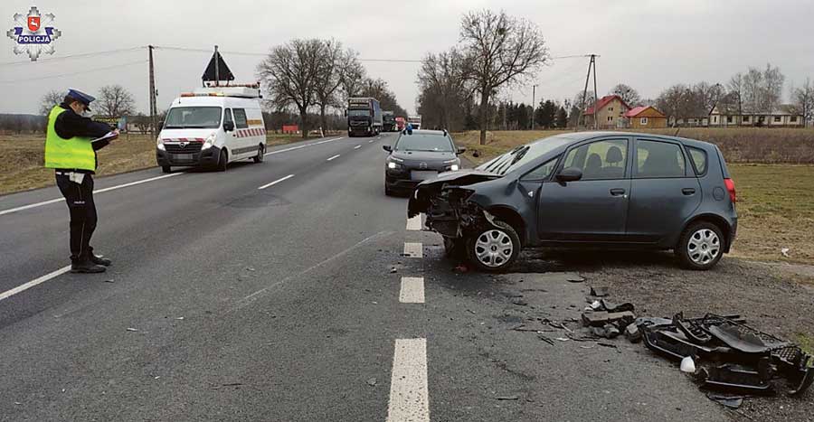 Jak ustalili policjanci, 57-letnia mieszkanka gminy Krasnystaw, kierująca Mistubishi, podczas włączania się do ruchu z posesji doprowadziła do zderzenia z prawidłowo jadącym w kierunku Lublina samochodem marki Saab, który akurat w tym momencie wykonywał manewr wyprzedzania Opla jadącego przed nim. – W wyniku zderzenia obu pojazdów, doszło także do uderzenia z wyprzedzanym samochodem marki Opel, którym kierował 57-letni mieszkaniec powiatu zamojskiego. Saabem natomiast kierował 24-latek z Zamościa – informuje Jolanta Babicz, rzecznik krasnostawskiej policji.