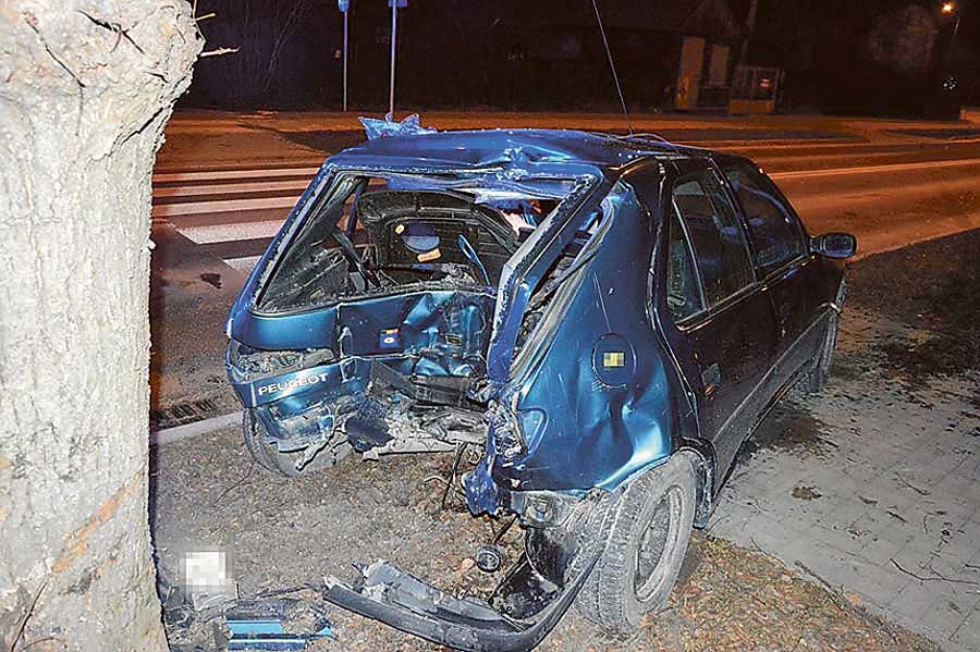 Nad ranem, 7 stycznia, służby ratunkowe i policja odebrały zgłoszenie o wypadku przy ul. Kolejowej w Chełmie. Skierowani na miejsce policjanci ustalili wstępnie, że kierujący samochodem marki Peugeot, 19-letni mieszkaniec gminy Dorohusk, na łuku jezdni stracił panowanie nad pojazdem, w wyniku czego zjechał z drogi i uderzył w drzewo. Miał ponad 1,5 promila alkoholu w organizmie.