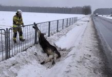 Łoś utnął w barierkach. Na ratunek pospieszyli druhowie