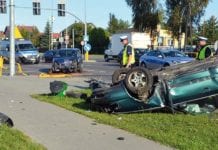 Był w szoku czy pod wpływem? Kierowca audi po zderzeniu z innym samochodem wyczołgał się z wraku i uciekł.