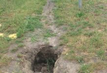 Cel może i słuszny, ale metoda idiotyczna. Ktoś, prawdopodobnie chcąc oduczyć przechodniów i rowerzystów skracania sobie drogi przez trawnik, wykopał na wydeptanej ścieżce półmetrowy...