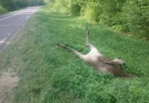 Przez kilka dni dwa martwe łosie leżały przy trasie włodawskiej. Kierowcy słusznie pytają: Dlaczego żadne służby nie usunęły martwych zwierząt?