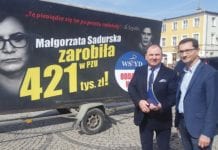 „Konwój wstydu” pojawił się w ubiegłym tygodniu w Chełmie. Na pl. Łuczkowskiego przyjechał billboard z wizerunkiem Małgorzaty Sadurskiej i kwotą, jaką zarobiła w PZU....