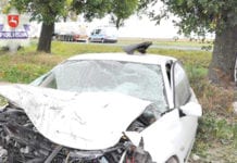 Chciała wyprzedzić cysternę i uderzyła w jej bok. Straciła panowanie nad kierownicą i zatrzymała się na przydrożnym drzewie. Ranną 42-latkę karetka przewiozła na sygnale...