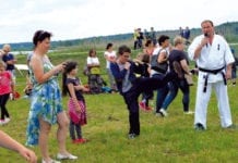 (28 sierpnia) Dożynkowe święto nad Zalewem Żółtańce otworzył tradycyjny korowód wieńców dożynkowych, który ubarwili: najmłodsza grupa Zespołu Pieśni i Tańca „Uherzacy” oraz Kapela Kataryna.