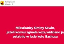 W poniedziałek w lesie koło miejscowości Bachus okoliczni mieszkańcy zauważyli błąkającą się… kozę. Władze gminy Sawin zaangażowały się w poszukiwanie właściciela.
