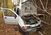 Dwaj pijani ruszyli fiatem w drogę, ale podróż zakończyli na drzewie. Pasażer trafił do szpitala, a kierowca niebawem stanie przed sądem.