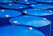 Beczki z chemikaliami na posesji