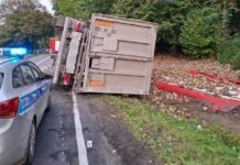 Ciężarówka z burakami w rowie, kierowca w szpitalu