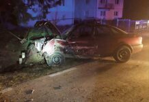 Dramatyczne chwile w Latyczowie (gmina Gorzków). Kompletnie pijany kierowca Audi doprowadził do zderzenia z BMW. Jedna osoba trafiła do szpitala.