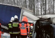 Chwile grozy na drodze krajowej nr 17 w Łopienniku Górnym. Na śliskiej nawierzchni doszło do zderzenie dwóch ciężarówek.