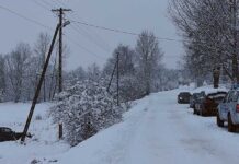 Ciągle padający, marznący śnieg i zimowa...