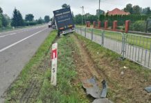 Sporo strachu najadł się kierowca ciężarówki, która wypadła z drogi w Fajsławicach i zatrzymała się w rowie.