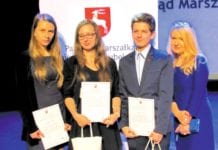 Uczniowie I LO w Krasnymstawie - Katarzyna Dudek, Arkadiusz Kłosowski, Paulina Kostrzanowska i Aleksandra Zielińska - otrzymali stypendia w ramach programu stypendialnego „Lubelskie wspiera...