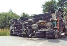 Nie nadmierna prędkość, a zerwanie poduszki w zawieszeniu było przyczyną wywrócenia wielkiej betoniarki. Do nietypowego zdarzenia doszło w środę w Chorupniku.