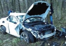 Wymusił pierwszeństwo i wyrzucił na drzewo