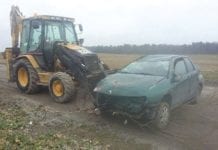 34-latek tak świętował swoje urodziny, że jego seat wylądował w przydrożnym rowie. Potem desperat ze znajomymi próbował przy pomocy koparki zaciągnąć auto do domu....