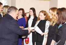 Uroczyście w Kolegium Pojezuickim w Krasnymstawie. Zwycięzcy konkursów przedmiotowych organizowanych w powiecie odebrali z rąk starosty Janusza Szpaka stypendia i dyplomy uznania.