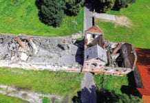 Spróchniałe belki, zwisające nad bramą płaty blachy, odpadający tynk, luzujące się cegły, w końcu brak wieńca - budynek tzw. belwederu w Różance (gm. Włodawa)...
