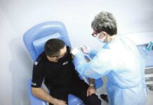 Trwają szczepienia mundurowych. Strażacy, policjanci, celnicy, strażnicy graniczni, terytorialsi przyjmują pierwsze dawki szczepionek.