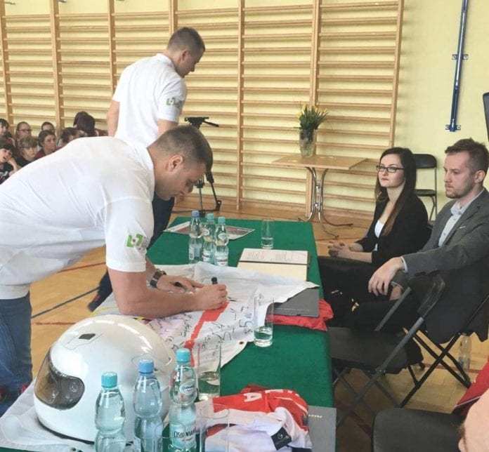 Nie zabrakło oczywiście prezentacji kombinezonów, w których zawodnicy występowali w tegorocznych igrzyskach , a na koniec spotkania każdy mógł przymierzyć kask, w którym startują na zawodach. Podczas wizyty zawodnicy należący do programu Akademickie Centrum Szkolenia Sportowego w Lublinie złożyli kilkadziesiąt także podpisów na kartach.