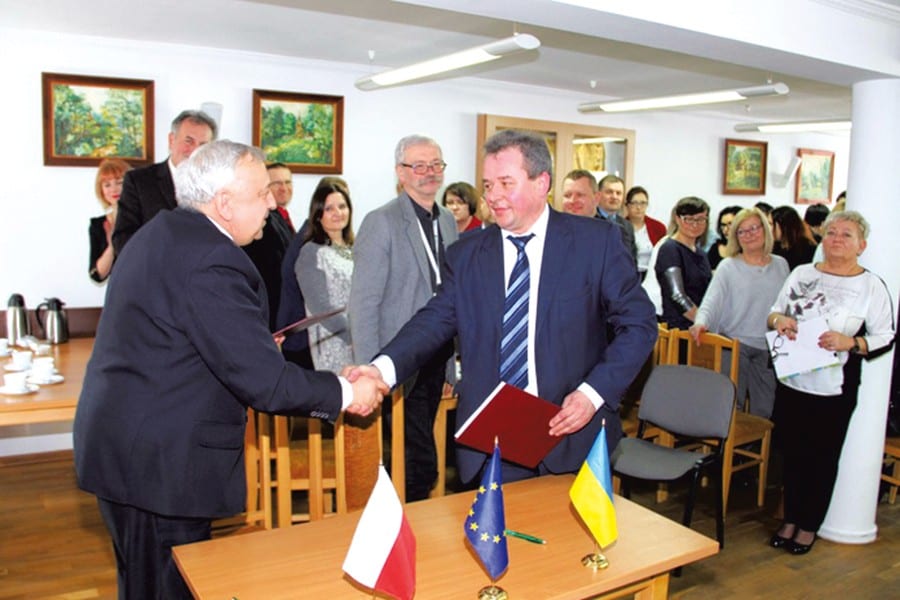 16 lutego Krasnystaw odwiedziła delegacja Rejonu Kiverce na Ukrainie. W jej skład wchodzili: Grigorij Nedopad – przewodniczący Rady Rejonowej, Walery Tkaczuk – przewodniczący Administracji Państwowej Rejonu, Julian Taranczuk – pierwszy zastępca przewodniczącego administracji, Jana Tserkiewicz – radna odpowiedzialna za sprawy międzynarodowe oraz Iryna Kutsyk – zajmująca się projektami i inwestycjami w Rejonie Kiverce. Podpisy pod umową o współpracy z Kivercami złożyli starosta Janusz Szpak i jego zastępca Henryk Czerniej. – Podczas spotkania w gabinecie starosty omówiono zakres współpracy i przystąpiono do opracowywania wspólnego kalendarza zadań – informuje Sławomir Kamiński, rzecznik powiatu. (k)