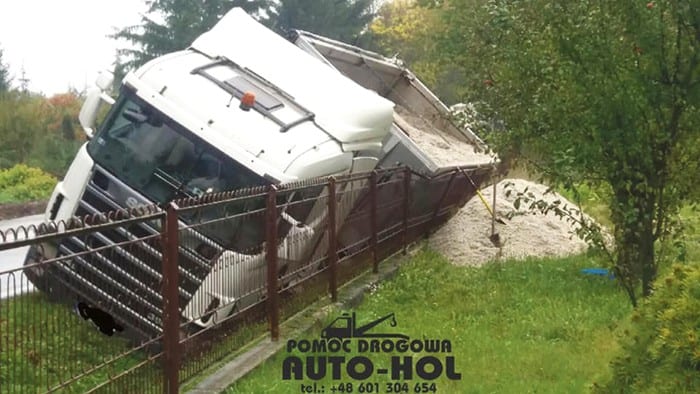 Tydzień temu pisaliśmy, że w czwartek (28 września) w Borówku na trasie Żółkiewka – Gorzków, przewrócił się tir przewożący buraki cukrowe. Minęło zaledwie pięć dni i we wtorek, 3 października, doszło do niemal identycznej sytuacji. Tym razem kierujący ciężarówką przewożącą wysłodki buraczane mężczyzna stracił panowanie nad autem, które zjechało do przydrożnego rowu i zawiesiło się na ogrodzeniu jednej z posesji. Część ładunku wysypała się z naczepy. Kierowcy nic się nie stało. Policja apeluje, by jadący drogą nr 842 zdjęli nogę z gazu. To dość wąska trasa, przy padającym deszczu śliska, a w czasie kampanii buraczanej bardzo często uczęszczana. (kg, fot. Auto Hol Kraśnik