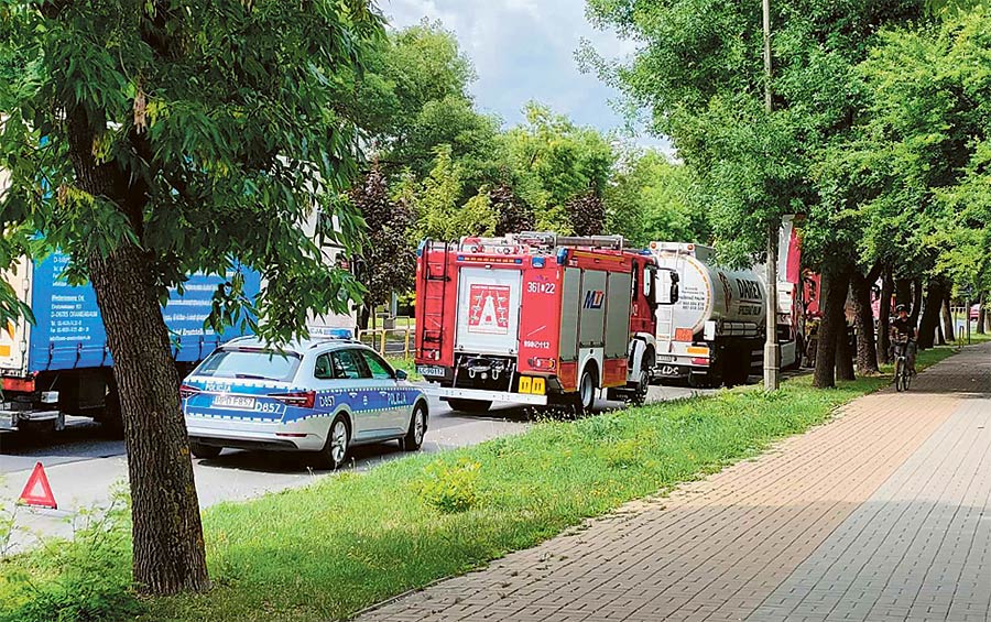 We wtorek przed południem (1 sierpnia) doszło do groźnie wyglądającego zdarzenia przy al. Żołnierzy I AWP w Chełmie. Jak wynika ze wstępnych ustaleń, kierujący ciężarówką zatrzymał się przed przejściem dla pieszych. W tył pojazdu uderzył z impetem kierowca drugiego tira, który jechał za nim. Mężczyzna nie zachował bezpiecznej odległości i nie wyhamował w porę. Tyle dobrego, że skończyło się na kolizji.