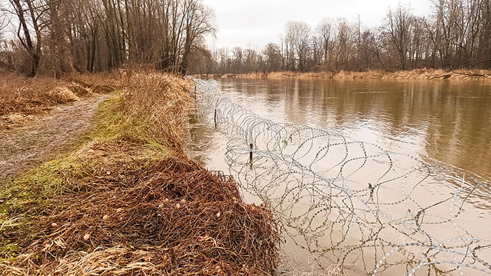 Zasieki z drutu żyletkowego, zwanego koncertiną, rozciągają się na terenie powiatu włodawskiego od trójstyku granic Polski, Ukrainy i Białorusi w okolicach Orchówka do Kuzawki w gminie Hanna. Głównym celem ułożenia zapory miało być dodatkowe zabezpieczenie granicy przed uchodźcami. Już od chwili powstania tego pomysłu pod koniec ubiegłego roku mieszkańcy nadbużańskich miejscowości pukali się w głowy, twierdząc, że taka forma zabezpieczenia granicy nie zda egzaminu w przypadku tej rzeki. A gdy zobaczyli, że zapora ląduje na samym brzegu Bugu, tylko w swoim przekonaniu się utwierdzili.