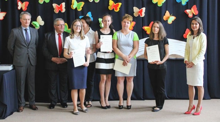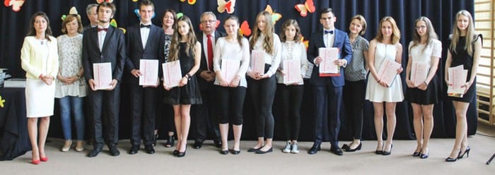 Po przywitaniu zebranych dyrektor I LO Edyta Fidecka dokonała podsumowania roku szkolnego, podkreślając sukcesy uczniów w olimpiadach i konkursach przedmiotowych oraz zapoznała zebranych z wynikami klasyfikacji końcowej. Najwyższą średnia w roku szkolnym 2015/16 mogły się cieszyć klasy: I c – 4,25, klasa I a – 4,00, II a i II c – 3,93. Najlepsza frekwencja: I a – 93,19 procent, II a – 93,18, II a – 93,08. Do Stypendium Prezesa Rady Ministrów wytypowana została Paulina Kostrzanowska z klasy II c, najlepsza uczennica w szkole ze średnią 5,33. Nagrodę Cum Laude ( dla uczniów klas II) otrzymali: Agata Białek (II b, średnia ocen – 5,22), Aleksandra Zielińska (II c, 5,0), Wojciech Chruściel (II a, 4,89). Nagrodę Sapere Auso (dla uczniów klas I) otrzymali: Katarzyna Dudek (I b, 5,25), Przemysław Dobosz (I b, 5,0), Sabina Drąg (I c, 5,0). Nagrodę od Stowarzyszenia Absolwentów Liceum i Gimnazjum im. Władysława Jagiełły w Krasnymstawie otrzymali: Paulina Kiszczak (II b, 5,11) i Jakub Parzymies (I c, 4,76). Nagrodami za bardzo dobre wyniki w nauce (średnia ocen 4,75 i wyższa) zostali wyróżnieni: I b – Katarzyna Dudek, Przemysław Dobosz, I c – Sabina Drąg, Jakub Parzymies, Małgorzata Marczewska, Agata Mazurek, Agata Troć, II a – Wojciech Chruściel, Adam Ogonowski, Ilona Roman, II b – Agata Białek, Paulina Kiszczak, Edyta Śliwa, Kamil Dzida, Izabela Podkowiak, II c – Paulina Kostrzanowska, Aleksandra Zielińska. Wyróżnieniem za stuprocentową frekwencją mogli się poszczycić: I a – Wojciech Dziedzic, I c – Patrycja Cichosz, Małgorzata Marczewska, Marceli Pacan, Hubert Waśkiewicz, Weronika Wójcik, II a – Karolina Ciepłowska, Wojciech Chruściel. Uhonorowani zostali też uczniowie mający dobre wyniki w nauce, którzy jednocześnie wykazali się działalnością na rzecz szkoły lub społeczności lokalnej: Wojciech Dziedzic, Julia Grabek, Karol Kołodziejak, Joanna Miszczak, Michał Moń, Tomasz Szuba, Michał Szymczyk, Michał Szyszkowski, Ewelina Chmielewska, Agnieszka Górna, Adrian Kostrzanowski, Aleksandra Liśkiewicz, Aleksandra Manachiewicz, Aleksandra Rękas, Weronika Tomaszewska, Wiktoria Zwarzyńska vel Franczak, Damian Ćwikła, Weronika Dzirba, Agnieszka Fidecka, Klaudia Gontarz, Daniel Gowin, Aleksandra Mąka, Marceli Pacan, Igor Pawlak, Kamila Suchorab, Katarzyna Szadura, Kornelia Szymańska, Weronika Świst, Weronika Wójcik, Karolina Ciepłowska, Małgorzata Chwil, Monika Piotrowska, Bartosz Rogowski, Izabela Stasiuk, Karolina Szewczyk, Paulina Ciechańska, Karolina Gontarz, Paulina Łuszczak, Aleksandra Manachiewicz, Agata Patyk, Karol Piwko, Aleksandra Ścibor, Patrycja Żydek, Maciej Adamski, Dominika Budzyńska, Izabella Ciechańska, Martyna Gawron, Weronika Mróz, Paulina Puchala. (k)