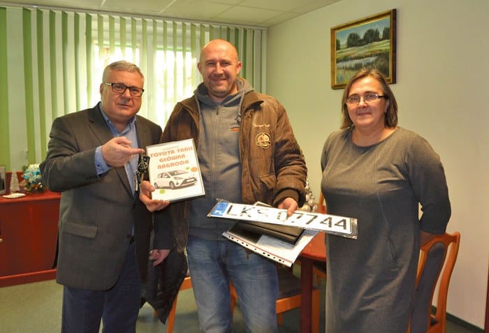 Przekazanie nagrody odbyło się w siedzibie Społem w Chełmie w obecności prezesa Gamy Krzysztofa Zająca i wiceprezes Mirosławy Kopciejewskiej. Szczęśliwy zwycięzca, pan Krzysztof, po odbiór auta przybył osobiście. Jego radość była ogromna. Mieszkaniec Krasnegostawu do momentu przekazania kluczyków nie mógł uwierzyć, że właśnie stał się właścicielem nowiutkiej Toyoty. Właściciele Gamy gratulują zwycięzcy i zapraszają do udziału w kolejnych loteriach organizowanych przez sklep. (kg)