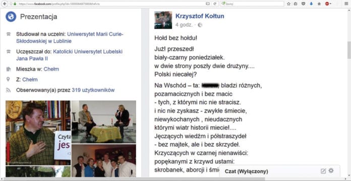 „I po co się tłuc, stara kur**?” – rzucił do jednej z uczestniczek chełmskiego „Czarnego marszu”. Tym niewybrednym słownictwem na oczach co najmniej kilkudziesięciu osób „popisał się” Krzysztof Kołtun (poeta, kresowiak i właściciel antykwariatu). Zniesmaczone uczestniczki marszu próbowały namówić kobietę, by złożyła do prokuratury zawiadomienie o znieważeniu. Ostatecznie jednak zaatakowana przez Kołtuna nie zdecydowała się wnieść oskarżenia.