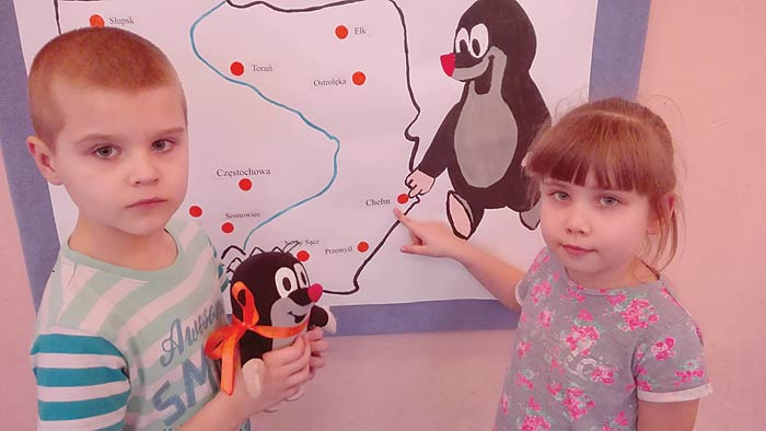 Przedszkolaki odwiedził krecik, który przyjechał z Częstochowy. Dzieci poznały jego miasto, jak również z chęcią opowiadały o Chełmie, zabierając krecika na wycieczkę do podziemi kredowych, na spacer po starówce oraz słodki poczęstunek w kawiarni. Odwiedziły także prezydent Chełma Agatę Fisz.