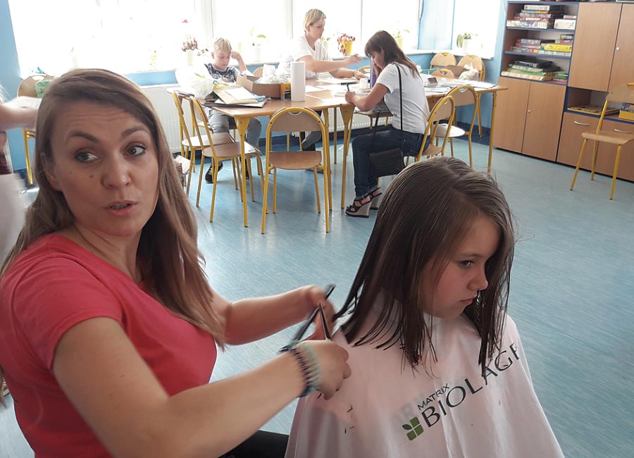 – Skontaktowały się z nami nauczycielki ze szkoły w Sawinie z informacją, że są dziewczynki chętne przekazać swoje włosy – mówi Monika Tarnowska. – Ucieszyliśmy się, że ta wspaniała inicjatywa spotkała się z takim odzewem i postanowiliśmy przyjechać do Sawina. Włosy oddało aż dwanaście dziewczynek i jedna mama. To wspaniały gest. Dziękujemy, bo cel jest naprawdę szczytny.