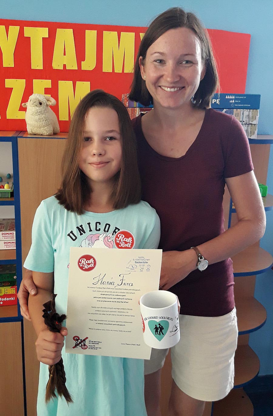 – Usłyszeliśmy o tej akcji i rozpowszechniliśmy ją wśród uczniów – mówi Anna Sabarańska-Kowalska, opiekun samorządu uczniowskiego i szkolnego klubu wolontariatu. – Dziewczynki chętnie zgłaszały się do udziału. Skontaktowaliśmy się z w tej sprawie z salonem Lejdis&Dżentelmen. Akcja udała się znakomicie, a my jesteśmy dumni z naszych uczennic. Warto było uczestniczyć w tym przedsięwzięciu. To nic nie kosztuje, a pomaga kobietom, dziewczynkom cierpiącym na choroby onkologiczne. Czasami ciężko nam podciąć odrobinę włosy, a przecież chorzy w trakcie leczenia często zostają bez włosów na głowie.
