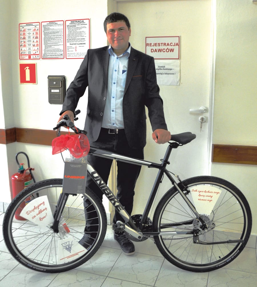 – Ułożyłem trzy hasła, ale po konsultacjach rodzinnych to zwycięskie zostało – mówi A. Rybaczuk. – A rower nawet miałem sobie właśnie kupić, zatem nagroda idealnie mi się wpasowała w plany. Najważniejsze jest jednak to, że oddając krew, pomaga się drugiemu człowiekowi. (mg)