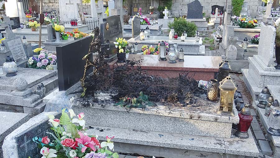Do zdarzenia doszło w poniedziałek, 16 kwietnia. Na cmentarzu parafialnym w Chełmie przy ul. Lwowskiej z nieustalonych dotąd przyczyn spaliły się wieńce i kwiaty na jednym z pomników. Rodzina była zszokowana. – Pożar uszkodził pomnik. Nie wiemy, kto mógł dopuścić się tak ohydnego czynu – mówi pani Magdalena. W grobie pochowani są jej rodzice. Kobieta podejrzewa, kto byłby zdolny do podpalenia pomnika. Mówi, że może to być osoba, która uszkodziła pomnik i zwleka z jego naprawą. – Za każdym razem, gdy ten człowiek widzi na cmentarzu mnie lub mojego męża, oddala się.