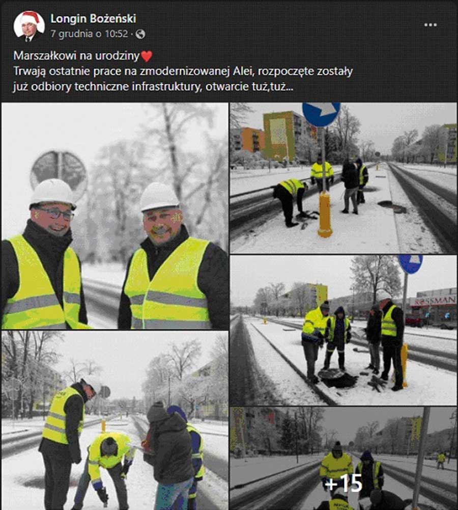„Marszałkowi na urodziny♥. Trwają ostatnie prace na zmodernizowanej Alei, rozpoczęte zostały już odbiory techniczne infrastruktury, otwarcie tuż, tuż…”.