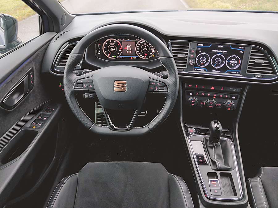 Kierowca tej Cupry ma do dyspozycji aż 300 koni mechanicznych wykrzesanych z benzynowego silnika o pojemności dwóch litrów. Co to oznacza w praktyce? A no to, że prawdopodobnie będziemy najszybszym autem w okolicy. Sprint do setki trwa zaledwie 4,9 sekundy, a prędkość maksymalną ograniczono do 250 km/h. Napęd na cztery koła przenosi automat DSG, a średnie spalanie przy normalnym użytkowaniu wynosi ok. 13 litrów benzyny. Gdy zdecydujemy wykorzystać cały potencjał drzemiący w tym aucie, zużycie rośnie nawet w okolice 20 litrów. Ale kto by się tym przejmował mając tyle frajdy.