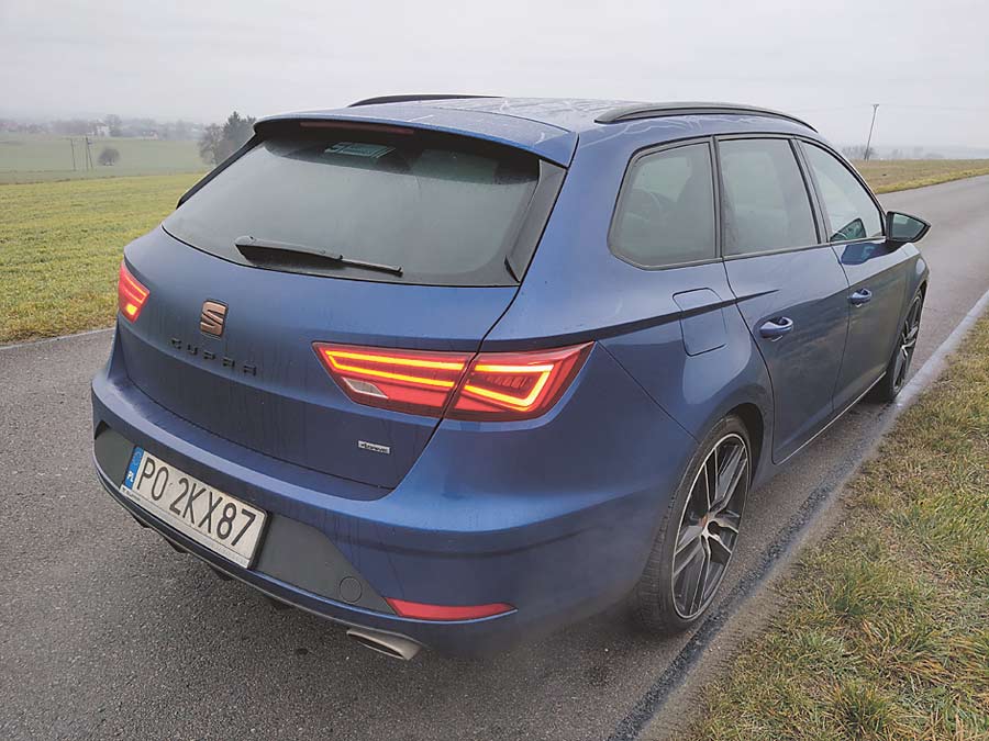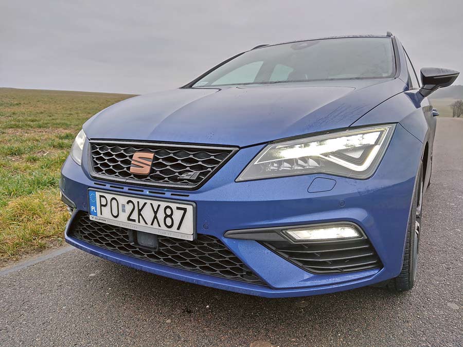 Zdecydowane, ostre kształty, zwarta, jakby przygotowana do skoku sylwetka i agresywny pas przedni Leona prezentują się kapitalnie. Podobnie jak podwójna końcówka wydechu, napompowany zderzak, spojler i tylne lampy podkreślone dodatkowo ostrym przetłoczeniem. Całość wygląda bardzo fajnie, ale „zwykły”, niebieski lakier i brak krzykliwych elementów w nadwoziu sprawia, że mało kto spodziewa się, że pod maską tego samochodu drzemie 300 gotowych do galopu mechanicznych koni. Nieco rozczarowuje wnętrze, w którym jedynym sportowym elementem są kubełkowe fotele, które jednak bardzo ucywilizowano.