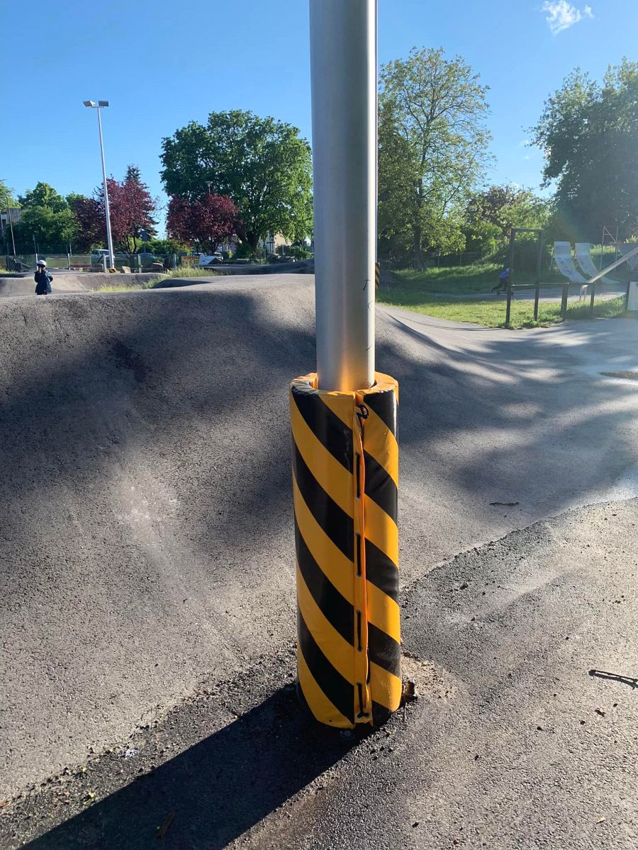 Radna Magdalena Szabała zwróciła się do miasta o zabezpieczenie słupów oświetleniowych na terenie świdnickiego pumptracka. Efekty jej prośby już widać przy torze. Materace osłaniające latarnie zamontował Pegimek.