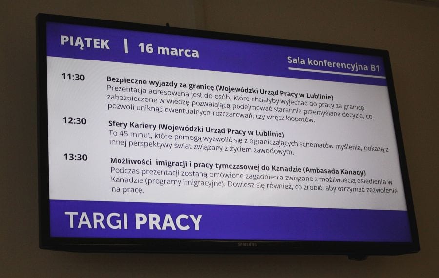 Przedstawiciele ambasady Kanady mówili o możliwości imigracji i pracy tymczasowej w kraju klonowego liścia. Podczas prezentacji zostały omówione zagadnienia związane z możliwością osiedlenia się w Kanadzie, a także kwestie związane z otrzymaniem zezwolenia na pracę. BS