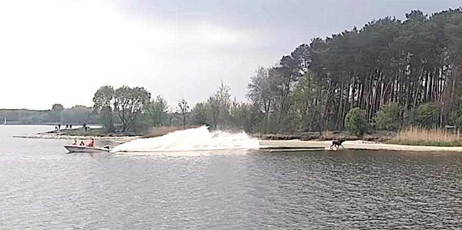 Przechodnie myśleli, że łoś ugrzązł w mulistym dnie. Kiedy zbliżyła się do niego motorówka, zwierzę poderwało się i bez problemu pobiegło na ląd. Okazało się, że chciało tylko się wykąpać. Spłoszony łoś wrócił do lasu. LL