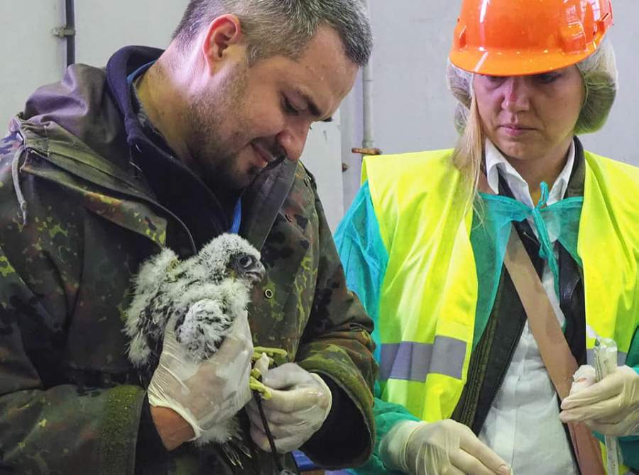 W środę, 15 maja sokoły z Lublina zostały zaobrączkowane – wiadomo już, że niemal 150 metrów nad ziemią mieszkają dwie młode samice i samiec. Ptaki są w dobrym stanie – samiec waży 645 g a samice – 955 i 893 gramy. Nałożono im dwie numerowane obrączki: żółtą – ornitologiczną i obserwacyjną.