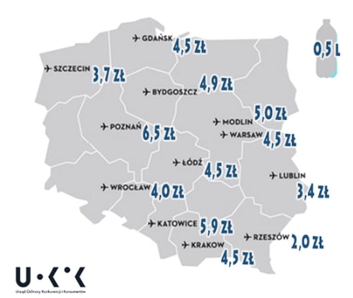 Na początku tego roku Urząd Ochrony Konkurencji i Konsumentów zapytał wszystkie polskie lotniska o dostępność i cenę wody w tzw. strefie wolnocłowej. Ta prośba to odpowiedź na skargi konsumentów, którzy niejednokrotnie podnosili, że ceny za wodę na lotniskach są wysokie, a w strefie wolnocłowej brakuje ujęć darmowej wody. Chodziło o sprawdzenie, czy nie doszło do zmowy cenowej sprzedawców.