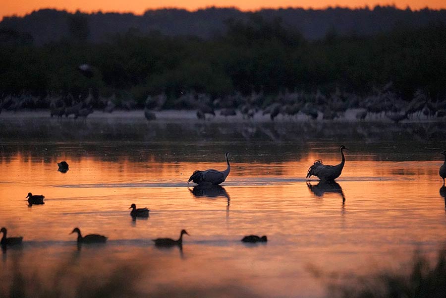 PPN jest największą ostoją żółwia błotnego w kraju, ale słynie także z wielkiej populacji żurawi. W sobotę (24 sierpnia) odbyło się coroczne liczenie tych ptaków w ramach V Lubelskiego Spotkania z Przyrodą „Pożegnanie Żurawi” 2024. O wpół do piątej rano uczestnicy zebrali się przy Bagnie Bubnów, by obserwować te majestatyczne ptaki, których klangor rozchodzi się głośnym echem po całej okolicy. (bm, Fot. FB PPN)