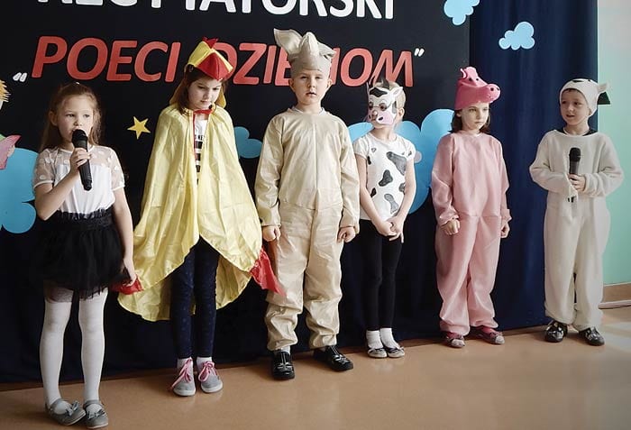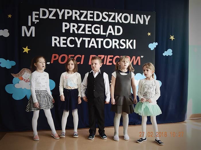 W oddziale przedszkolnym Szkoły Podstawowej nr 5 w Krasnymstawie zorganizowano międzyprzedszkolny przegląd recytatorski „Poeci dzieciom”. Uczestniczyły w nim dzieci z Przedszkoli nr: 1, 4, 5, 6 oraz 8 w Krasnymstawie, a wśród gości był m.in. wiceburmistrz Krasnegostawu Wojciech Kowalczyk. Szczególną popularnością wśród małych recytatorów cieszyły się utwory Juliana Tuwima, Jana Brzechwy i Doroty Gellner. (k)