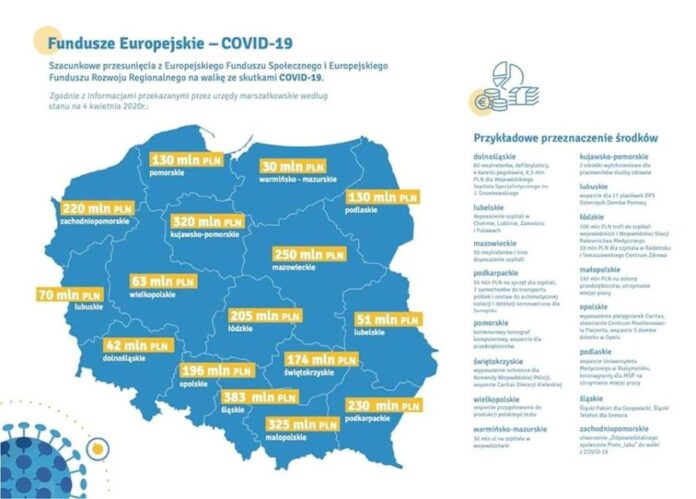 Chodzi o „szacunkowe przesunięcia z Europejskiego Funduszu Społecznego i Europejskiego Funduszu Rozwoju Regionalnego na walkę ze skutkami koronawirusa”. Grafika ilustrująca wspomniane przesunięcia jest dostępna w internecie. Uwzględniono w niej wszystkie województwa w Polsce, których jest 16. Lubelszczyzna zajęła 3. miejsce od końca, z „przesunięciem w wysokości 51 mln złotych”. Pieniądze przeznaczono na doposażenie szpitali w Chełmie, Lublinie, Zamościu i Puławach. Gorzej wypadły tylko województwa warmińsko-mazurskie (przesunięcie w wysokości 30 mln złotych) i dolnośląskie (przesunięcie w wysokości 42 mln złotych). Dane pochodzą sprzed kilku tygodni.