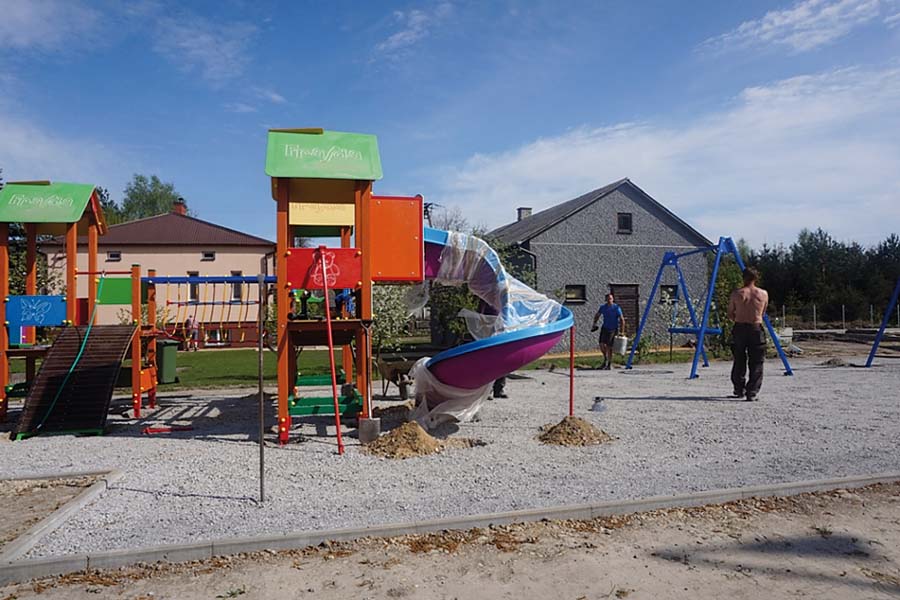Plac zabaw powstaje w ramach projektu „Budowa i przebudowa infrastruktury przedszkoli w Gminie Urszulin” realizowanego w ramach Regionalnego Programu Operacyjnego Województwa Lubelskiego na lata 2014-2020. (b)